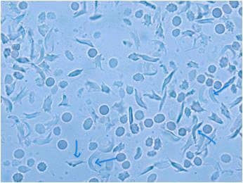 sickle cell anemia/HbS-beta thalassemia : Marked sickling is observed within 1 hour.